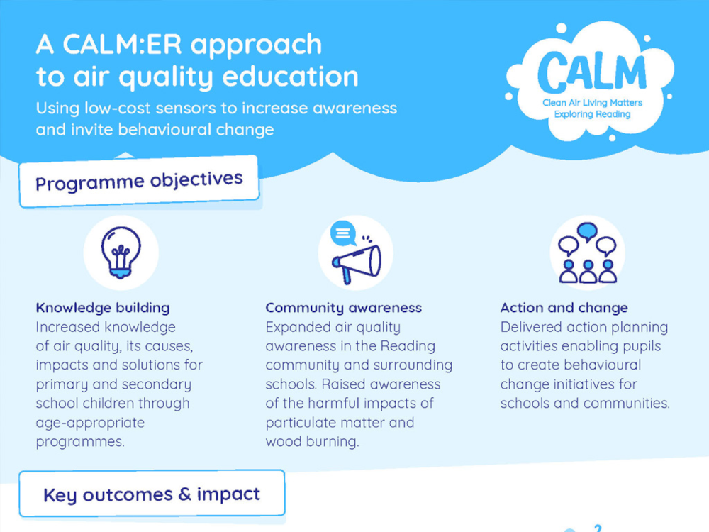 CALM:ER is committed to supporting the Reading-based schools who have been so actively engaged in the programme. For more information about the successful CALM:ER programmed please email Ross Jarvis, Principal Air Quality Project Officer – ross.jarvis@reading.gov.uk.