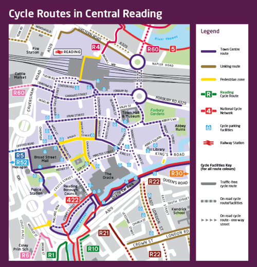 - The National Cycling Routes that go through Reading 5, 4,422 and 23 offer quiet and pleasant alternatives for cyclists wishing to travel to and from Reading – Red